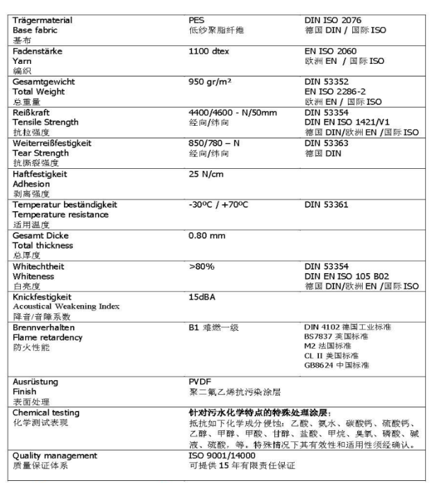 膜材技術數據