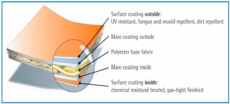 高張力經緯向聚酯長絲為膜體系材料結構的受力部分,提供高強的結構性能;